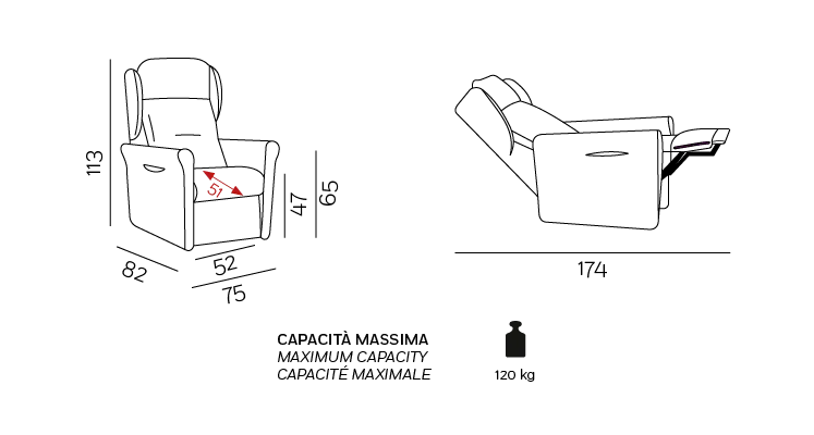 Dotata di tre motori indipendenti, offre un comfort su misura grazie alle sue tre posizioni regolabili: lift, relax e tv.