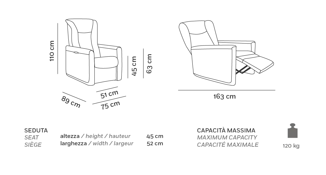 The footrest can therefore be raised at any time, without lowering the backrest, letting you get into the perfect position in front of the TV.