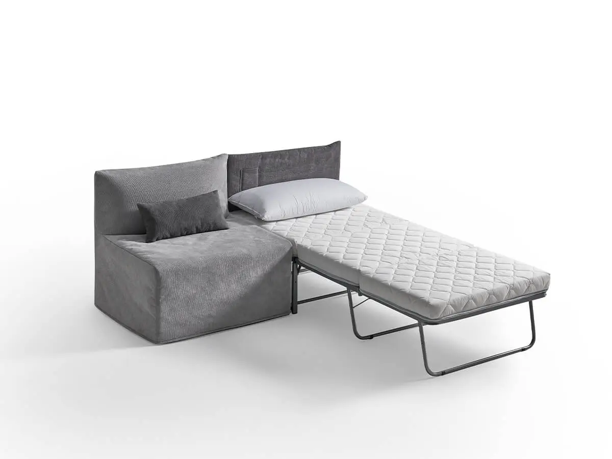 • Meccanismo a scorrimento o a cassetto: La parte inferiore della seduta scorre in avanti, rivelando la rete e il materasso ripiegati all’interno. È una soluzione pratica e veloce.